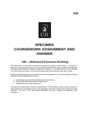 specimen coursework assignment and answer